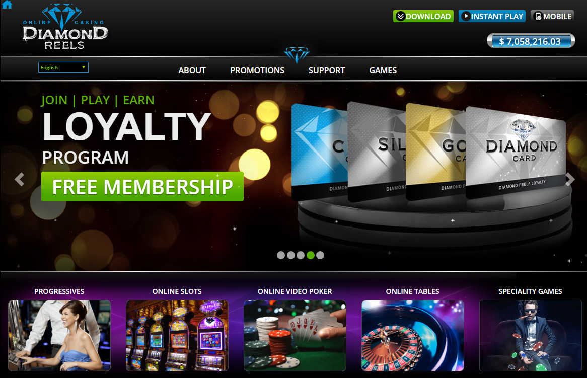 Being a new online casino, Diamond Reels Casino provides its players a great graphical interface, easy to operate and user-friendly. Organized in several “click and access” tabs and menus, the casino player can identify within seconds any interesting category. You can play easily on your desktop or your portable devices (mobile phone or tablet), having at your disposal a wide range of the classic and newest casino games, especially roulette spinning games. All games are presented in astonishing graphic conditions, starting with the online slots, poker or table games and ending with featured or special games.